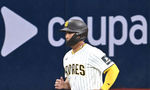 [OSEN=고척돔, 지형준 기자] 20일 오후 서울 고척스카이돔에서 ‘MLB 월드투어 서울 시리즈’ LA 다저스와 샌디에이고 파드리스의 경기가 열렸다. 4회말 샌디에이고 파드리스 김하성이 볼넷으로 출루하고 있다. 2024.03.20 /jpnews@osen.