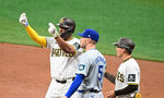 [OSEN=고척돔, 지형준 기자] 20일 오후 서울 고척스카이돔에서 ‘MLB 월드투어 서울 시리즈’ LA 다저스와 샌디에이고 파드리스의 개막 경기가 열렸다. 3회말 1사 3루에서 샌디에이고 보가츠가 선제 1타점 적시타를 날리며 기뻐하