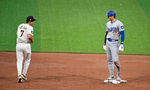 [OSEN=고척돔, 지형준 기자] 20일 오후 서울 고척스카이돔에서 ‘MLB 월드투어 서울 시리즈’ LA 다저스와 샌디에이고 파드리스의 경기가 열렸다. 경기에 앞서 LA 다저스 데이브 로버츠 감독과 샌디에이고 파드리스 마이크 싈트 감