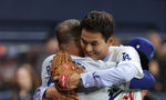 [OSEN=고척돔, 지형준 기자] 20일 오후 서울 고척스카이돔에서 ‘MLB 월드투어 서울 시리즈’ LA 다저스와 샌디에이고 파드리스의 경기가 열렸다. 경기에 앞서 박찬호가 시구를 마치고 LA 다저스 데이브 로버츠 감독과 포옹을 하고