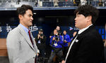 [OSEN=고척돔, 지형준 기자] 20일 오후 서울 고척스카이돔에서 ‘MLB 월드투어 서울 시리즈’ LA 다저스와 샌디에이고 파드리스의 경기가 열렸다. 다저스 데이브 로버츠 감독과 한화 류현진이 인사를 나누고 있다. 2024.03.20 /jpnews@os