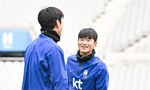 [OSEN=서울월드컵경기장, 박준형 기자] 20일 서울 마포구 서울월드컵경기장에서 2026 FIFA 북중미 월드컵 2차 예선 한국-태국 경기 공식훈련이 진행됐다. 김진수가 김영권과 이야기를 나누고 있다. 2024.03.20 / soul1014@osen.co.kr