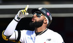 [OSEN=수원, 김성락 기자] 23일 오후 경기 수원시 KT위즈파크에서 ‘2024 신한 SOL Bank KBO리그’ KT 위즈와 삼성 라이온즈의 공식 개막전 경기가 열렸다.4회말 KT 선두타자 로하스가 역전 솔로 홈런을 날린 뒤 세리머니를 하고 있다. 202
