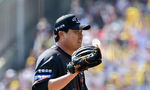 [OSEN=지형준 기자]] 23일 오후 서울 잠실야구장에서 ‘2024 신한 SOL Bank KBO리그’ LG 트윈스와 한화 이글스의 공식 개막전 경기가 열렸다.2회말 1사에서 한화 류현진이 LG 오지환에 볼넷을 허용하며 미소짓고 있다. 2024.03.23 /jpnews@osen.