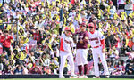[OSEN=수원, 김성락 기자] 23일 오후 경기 수원시 KT위즈파크에서 ‘2024 신한 SOL Bank KBO리그’ KT 위즈와 삼성 라이온즈의 공식 개막전 경기가 열렸다.2회초 삼성 선두주자 강민호가 선취 솔로 홈런을 날린 뒤 더그아웃에서 구자욱과
