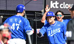 [OSEN=수원, 김성락 기자] 23일 오후 경기 수원시 KT위즈파크에서 ‘2024 신한 SOL Bank KBO리그’ KT 위즈와 삼성 라이온즈의 공식 개막전 경기가 열렸다.2회초 삼성 선두주자 강민호가 선취 솔로 홈런을 날린 뒤 더그아웃에서 류지혁과