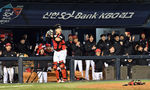 [OSEN=잠실, 조은정 기자]29일 서울 잠실야구장에서 '2024 신한 SOL 뱅크 KBO리그' 두산 베어스와 KIA 타이거즈의 경기가 열렸다.9회말 1사 1루 KIA 한승택이 두산 라모스의 파울 플라이를 처리하자 KIA 더그아웃이 기뻐하고 있다. 2024.03.2