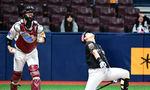 [OSEN=고척, 최규한 기자] 18일 오후 서울 고척스카이돔에서 ‘2024 신한 SOL Bank KBO리그’ 키움 히어로즈와 KT 위즈의 경기가 열렸다.이날 홈팀 키움은 선발투수로 헤이수스, 방문팀 KT는 벤자민을 내세웠다.6회초 2사 1, 3루 상황 KT
