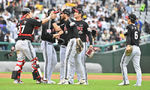 [OSEN=인천, 박준형 기자] LG 트윈스가 SSG 랜더스에 극적인 역전승을 거두며 위닝을 확정했다. LG는 21일 인천 SSG랜더스필드에서 열린 SSG와 더블헤더 1차전에서 10-8로 역전 승리를 거뒀다. 경기종료 후 LG 선수들이 승리의 기쁨을