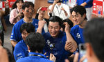 [OSEN=고척, 이대선 기자] 삼성은 26일 서울 고척스카이돔에서 열린 키움전에서 3-0으로 승리를 거뒀다.경기 종료 후 단일리그 아시아 최다 세이브를 기록한 삼성 오승환이 동료들에게 축하 물세례를 받고 인사하고 있다. 2024.04.26 /