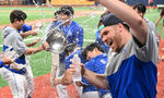 [OSEN=고척, 이대선 기자] 삼성은 26일 서울 고척스카이돔에서 열린 키움전에서 3-0으로 승리를 거뒀다.경기 종료 후 단일리그 아시아 최다 세이브를 기록한 삼성 오승환이 동료들에게 축하 물세례를 받고 있다. 2024.04.26 /sunday@osen.c