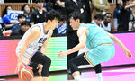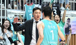 [OSEN=수원, 이대선 기자] 27일 오후 경기도 서수원칠보체육관에서 프로농구 챔피언결정전 1차전 수원 KT 소닉붐과 부산 KCC 이지스의 경기가 열렸다.2쿼터 KT 한희원이 버저비터를 성공시키고 송영진 감독과 환호하고 있다. 2024.4.27