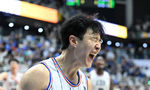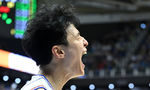 [OSEN=수원, 이대선 기자] 27일 오후 경기도 서수원칠보체육관에서 프로농구 챔피언결정전 1차전 수원 KT 소닉붐과 부산 KCC 이지스의 경기가 열렸다.2쿼터 KCC 송교창이 바스켓카운트를 얻어내고 환호하고 있다. 2024.4.27 /sunday@osen.co.