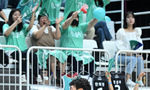 [OSEN=수원, 이대선 기자] 27일 오후 경기도 서수원칠보체육관에서 프로농구 챔피언결정전 1차전 수원 KT 소닉붐과 부산 KCC 이지스의 경기가 열렸다.2쿼터 KT 한희원이 버저비터를 성공시키고 환호하고 있다. 2024.4.27 /sunday@osen.co.kr