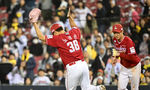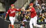 [OSEN=잠실, 이대선 기자] 7일 오후 서울 잠실야구장에서 ‘2024 신한 SOL Bank KBO리그’ LG 트윈스와 SSG 랜더스의 경기가 열렸다.7회말 2사 3루에서 SSG 노경은이 LG 김현수를 땅볼로 처리하고 최경모와 환호하며 더그아웃으로 가고 있