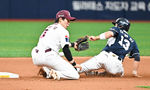 [OSEN=박준형 기자] 7일 오후 서울 고척스카이돔에서 ‘2024 신한 SOL BANK KBO리그’ 키움 히어로즈와 두산 베어스의 경기가 진행됐다.이날 키움은 이종민을, 두산은 곽빈을 선발투수로 내세웠다.8회초 무사 2,3루 두산 허경민이 2타