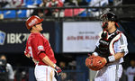 [OSEN=잠실, 이대선 기자] 7일 오후 서울 잠실야구장에서 ‘2024 신한 SOL Bank KBO리그’ LG 트윈스와 SSG 랜더스의 경기가 열렸다.7회초 1사 1루에서 LG 정우영이 자신의 투구 맞은 SSG 이지영을 향해 사과를 하고 있다. 2024.05.07 /sunday@osen
