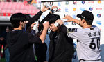 [OSEN=수원, 김성락 기자] 19일 오후 수원 KT위즈파크에서 ‘2024 신한 SOL Bank KBO리그’ KT 위즈와 LG 트윈스의 경기가 열렸다.이날 홈팀 KT는 성재헌, 원정팀 LG는 손주영을 선발로 내세웠다.경기 시작에 앞서 비투비 이창섭이