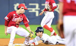 [OSEN=잠실, 최규한 기자] 22일 오후 서울 잠실야구장에서 ‘2024 신한 SOL Bank KBO리그’ 두산 베어스와 SSG 랜더스의 경기가 열렸다.이날 홈팀 두산은 김민규, 방문팀 SSG는 김광현을 선발로 내세운다.8회말 1사 1루 상황 두산 정수빈의