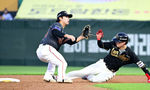[OSEN=잠실, 지형준 기자] 24일 오후 서울 잠실야구장에서 ‘2024 신한 SOL BANK KBO리그’ LG 트윈스와 NC 다이노스의 경기가 열렸다.이날 LG는 최원태, NC는 이준호를 선발로 내세웠다.3회말 무사 1루에서 LG 문보경이 오지환의 우전안타