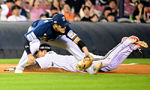 [OSEN=잠실, 지형준 기자] 24일 오후 서울 잠실야구장에서 ‘2024 신한 SOL BANK KBO리그’ LG 트윈스와 NC 다이노스의 경기가 열렸다.이날 LG는 최원태, NC는 이준호를 선발로 내세웠다.2회초 무사 1,2루에서 LG 오스틴이 NC 도태훈의 1루땅
