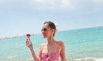 [OSEN=사진팀] 모델 벨라 하디드가 23일(현지시간) 프랑스 칸에서 열린 제 77회 칸 영화제에서 목격됐다.벨라 하디드가 해변가에서 아이스크림을 먹고 있다. / photo@osen.co.kr[사진] ⓒGettyimages(무단전재 및 재배포 금지)