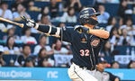 [OSEN=수원, 지형준 기자] 6일 오후 수원 KT위즈파크에서 ‘2024 신한 SOL BANK KBO리그’ KT 위즈와 한화 이글스의 경기가 열렸다.이날 KT는 엄상백, 한화는 류현진이 선발로 나섰다.7회초 2사 2루에서 한화 이원석이 최인호의 선제 1타점