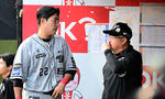 [OSEN=수원, 지형준 기자] 6일 오후 수원 KT위즈파크에서 ‘2024 신한 SOL BANK KBO리그’ KT 위즈와 한화 이글스의 경기가 열렸다.이날 KT는 엄상백, 한화는 류현진이 선발로 나섰다.5회초 공격을 앞두고 한화 김경문 감독이 채은성과