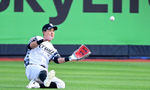 [OSEN=수원, 지형준 기자] 6일 오후 수원 KT위즈파크에서 ‘2024 신한 SOL BANK KBO리그’ KT 위즈와 한화 이글스의 경기가 열렸다.이날 KT는 엄상백, 한화는 류현진이 선발로 나섰다.6회초 2사에서 KT 배정대가 한화 노시환의 타구를 슬라