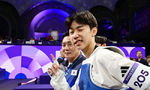 [OSEN=파리(프랑스), 최규한 기자] 8일(한국시간) 프랑스 파리 그랑팔레에서 ‘2024 파리올림픽’ 태권도 남자 58kg급 결승 한국 박태준과 아제르바이잔 가심 마고메도프의 경기가 열렸다.박태준은 마고메도프를 상대로 2-0으로 앞서