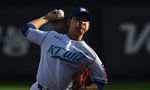[OSEN=수원, 조은정 기자]20일 오후 수원 KT위즈파크에서 ‘2025 신한 SOL Bank KBO리그’ KT 위즈와 한화 이글스의 경기가 열렸다.홈팀 KT는 소형준, 방문팀 한화는 류현진을 선발로 내세웠다.1회말 한화 류현진이 역투하고 있다. 2025.07.2