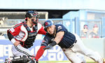 [OSEN=수원, 조은정 기자]20일 오후 수원 KT위즈파크에서 ‘2025 신한 SOL Bank KBO리그’ KT 위즈와 한화 이글스의 경기가 열렸다.홈팀 KT는 소형준, 방문팀 한화는 류현진을 선발로 내세웠다.1회초 한화 선두타자 김태연이 안타 세리머