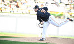 [OSEN=수원, 조은정 기자]20일 오후 수원 KT위즈파크에서 ‘2025 신한 SOL Bank KBO리그’ KT 위즈와 한화 이글스의 경기가 열렸다.홈팀 KT는 소형준, 방문팀 한화는 류현진을 선발로 내세웠다.1회초 KT 선발 소형준이 역투하고 있다. 2025.0