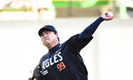 [OSEN=수원, 조은정 기자]20일 오후 수원 KT위즈파크에서 ‘2025 신한 SOL Bank KBO리그’ KT 위즈와 한화 이글스의 경기가 열렸다.홈팀 KT는 소형준, 방문팀 한화는 류현진을 선발로 내세웠다.1회말 한화 류현진이 피칭을 준비하고 있다