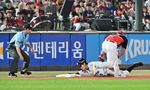 [OSEN=대전, 최규한 기자] 26일 대전 한화생명볼파크에서 ‘2025 신한 SOL Bank KBO리그’ 한화 이글스와 SSG 랜더스의 경기가 열렸다.홈팀 한화는 류현진, 방문팀 SSG는 김광현을 선발로 내세웠다.8회초 무사 1, 2루 상황 SSG 최지훈의 안
