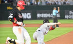 [OSEN=잠실, 최규한 기자] 27일 서울 잠실야구장에서 ‘2025 신한 SOL Bank KBO리그’ 두산 베어스와 LG 트윈스의 경기가 열렸다.홈팀 두산은 잭 로그, 방문팀 LG는 최채흥을 선발로 내세웠다.4회말 무사 1, 3루 상황 두산 정수빈의 역전 1