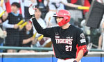 [OSEN=부산, 이석우 기자] 27일 부산 사직야구장에서 2025 신한 SOL 뱅크 KBO 리그 롯데 자이언츠와 KIA 타이거즈의 경기가 열렸다. 홈팀 롯데는 나균안이, 방문팀 KIA는 네일이 선발 출전했다.KIA 타이거즈 김태군이 3회초 좌월 솔로 홈