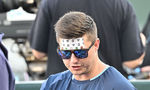 [OSEN=부산, 이석우 기자] 27일 부산 사직야구장에서 2025 신한 SOL 뱅크 KBO 리그 롯데 자이언츠와 KIA 타이거즈의 경기가 열렸다. 홈팀 롯데는 나균안이, 방문팀 KIA는 네일이 선발 출전했다.롯데 자이언츠 데이비슨이 이마에 아이스