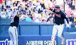 [OSEN=잠실, 최규한 기자] 27일 서울 잠실야구장에서 ‘2025 신한 SOL Bank KBO리그’ 두산 베어스와 LG 트윈스의 경기가 열렸다.홈팀 두산은 잭 로그, 방문팀 LG는 최채흥을 선발로 내세웠다.3회초 무사 선두타자로 나선 LG 박해민이 안