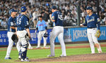 [OSEN=부산, 이석우 기자] 30일 부산 사직야구장에서 2025 신한 SOL 뱅크 KBO 리그 롯데 자이언츠와 NC 다이노스의 경기가 열렸다. 홈팀 롯데는 감보아가, 방문팀 NC는 목지훈이 선발 출전했다.NC 다이노스 선수들이 롯데 자이언츠에 9-4