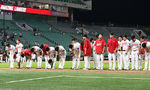 [OSEN=인천, 이대선 기자] SSG 랜더스와 키움 히어로즈는 30일 인천 SSG랜더스필드에서 열린 맞대결에서 5대5 무승부를 기록했다.경기 종료 후 키움 선수들이 관중석을 향해 인사를 하고 있다. 2025.07.30 /sunday@osen.co.kr