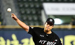 [OSEN=잠실, 지형준 기자] 31일 오후 서울 잠실구장에서 ‘2025 신한 SOL Bank KBO리그’ LG 트윈스와 KT 위즈의 경기가 열렸다.LG는 송승기, KT는 헤이수스가 선발로 나섰다.8회말 KT 강백호가 역투하고 있다. 2025.07.31 / jpnews@osen.co.kr