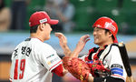 [OSEN=인천, 이대선 기자] SSG 랜더스는 31일 인천 SSG 랜더스필드에서 열린 2025 KBO리그 키움 히어로즈와의 경기에서 4-2로 승리했다.반면 7연패에 빠진 키움은 최하위에 머물렀다.경기 종료후 SSG 조병현과 이지영과 승리의 기쁨을 나