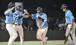 [OSEN=잠실, 지형준 기자] 31일 오후 서울 잠실구장에서 ‘2025 신한 SOL Bank KBO리그’ LG 트윈스와 KT 위즈의 경기가 열렸다.LG는 송승기, KT는 헤이수스가 선발로 나섰다.3회말 2사 만루에서 LG 천성호가 박해민의 2타점 적시타에 홈에