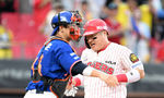 [OSEN=잠실, 지형준 기자] 1일 오후 서울 잠실구장에서 ‘2025 신한 SOL Bank KBO리그’ 두산 베어스와 SSG 랜더스의 경기가 열렸다.두산은 곽빈, SSG는 김광현이 선발로 나섰다.2회말 1사 1루에서 SSG 김광현이 이지영과 주저 앉아 김정국