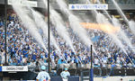 [OSEN=대구, 이석우 기자] 1일 대구삼성라이온즈파크에서 2025 신한 SOL 뱅크 KBO 리그 삼성 라이온즈와 LG 트윈스의 경기가 열렸다. 홈팀 삼성은 후라도가, 방문팀 LG는 임찬규가 선발 출전했다. 삼성 라이온즈 팬들이 시원한 워터 건