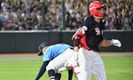 [OSEN=잠실, 조은정 기자]5일 오후 서울 잠실구장에서 ‘2025 신한 SOL Bank KBO리그’ LG 트윈스와 두산 베어스의 경기가 열렸다.LG는 손주영, 두산은 최승용을 선발로 내세웠다.6회말 무사 3루 LG 구본혁 땅볼에 오지환이 홈에서 아웃
