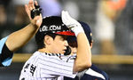 [OSEN=잠실, 조은정 기자]6일 오후 서울 잠실구장에서 ‘2025 신한 SOL Bank KBO리그’ LG 트윈스와 두산 베어스의 경기가 열렸다.LG는 최채흥, 두산은 콜어빈을 선발로 내세웠다.5회말 LG 선두타자 신민재가 2루타 세리머니를 하고 있다