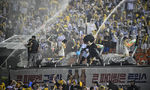 [OSEN=잠실, 조은정 기자]6일 오후 서울 잠실구장에서 ‘2025 신한 SOL Bank KBO리그’ LG 트윈스와 두산 베어스의 경기가 열렸다.LG는 최채흥, 두산은 콜어빈을 선발로 내세웠다.LG 홈 관중이 물대포를 맞으며 응원을 펼치고 있다. 2025.0