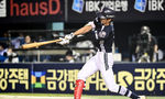 [OSEN=잠실, 조은정 기자]6일 오후 서울 잠실구장에서 ‘2025 신한 SOL Bank KBO리그’ LG 트윈스와 두산 베어스의 경기가 열렸다.LG는 최채흥, 두산은 콜어빈을 선발로 내세웠다.8회초 2사 2루 두산 이유찬이 적시타를 날리고 있다. 2025.